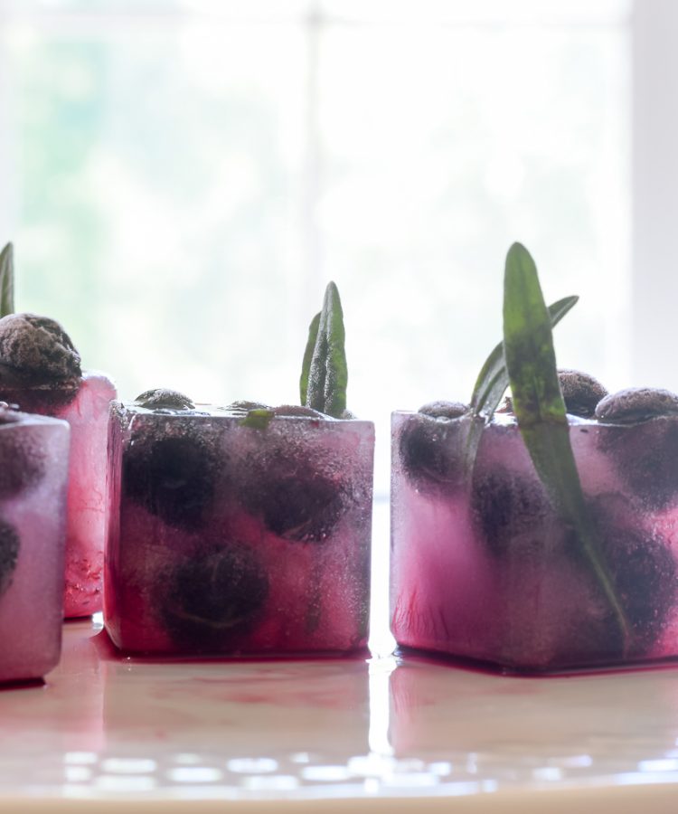 Next up…blueberry cubes with lavender. This combination is sublime, but if you are turned off by the thought of lavender leaves floating in your drink, you could brew some lavender tea. The leaves don’t bother me; just don’t chop them up…leave them as larger pieces so you can remove them if you chose.
