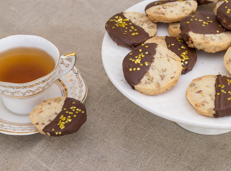 My only alteration to this recipe was to dip the finished cookies in chocolate and sprinkle them with edible gold hearts (Valentine’s Day and all). But clearly, pecan sandies are a cookie that doesn’t ‘need’ dipping in chocolate to be perfect…they just are all on their own.