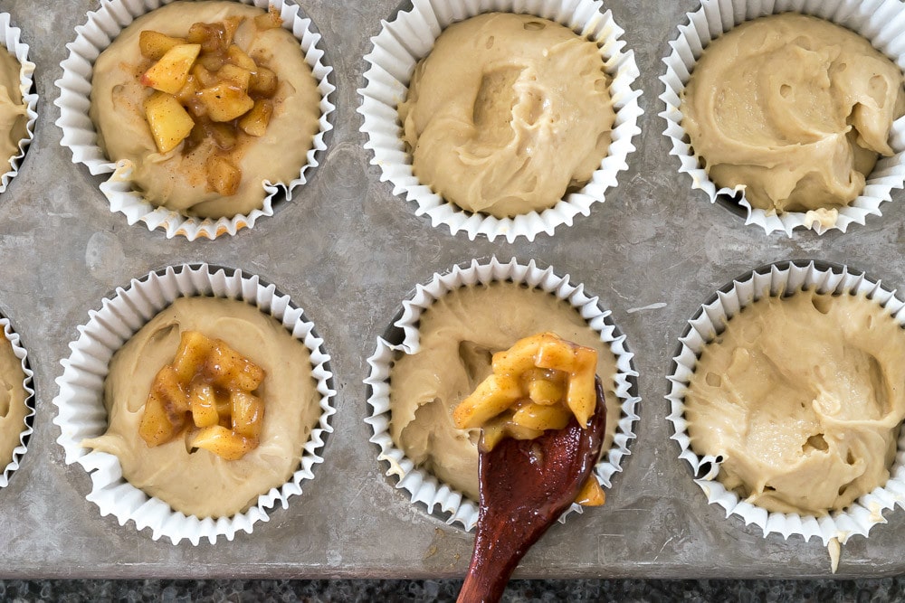 - Divide apple filling equally among the muffins, keeping it in the center of each muffin