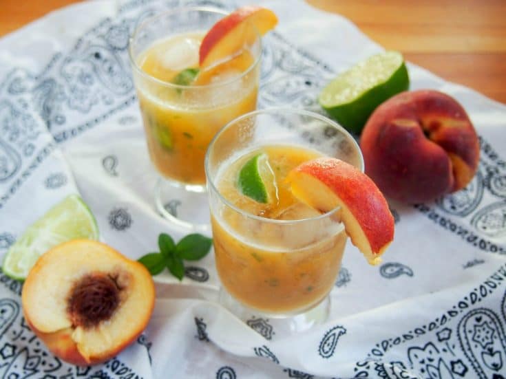 This basil peach margarita is deliciously fresh and fruity, easy to make and all too easy to enjoy (but you can make a mocktail version too, so don’t worry!)