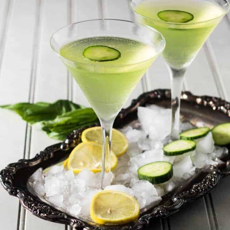 Spring and Summer in a glass… My St. Patrick’s Lemon Cucumber Martini With Fresh Basil beautifully balances a lemon and cucumber simple syrup with gin and muddled fresh basil leaves is the perfectly lovely and refreshing drink.