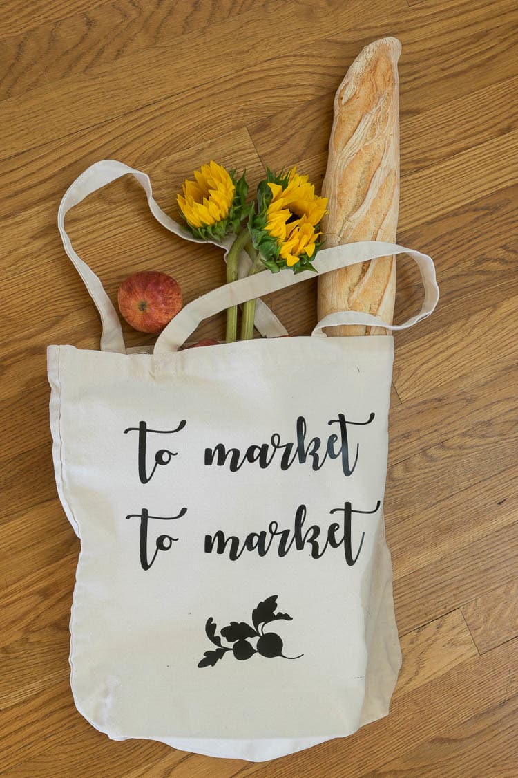 If you are wanting to spiffy up a market bag with Cricut Iron-On Vinyl for your Farmer’s Market excursion, bookmark this page or pin it for your future reference.