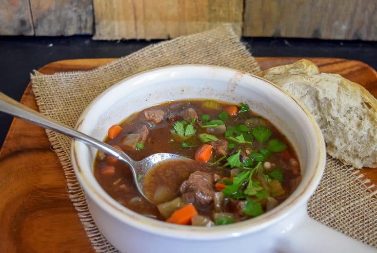Is it cool where you are? If so, this Hearty Beef Barley Soup must be on your menu and in your tummy! I have a hard time making and serving soups when it’s 95° and 95% humidity outside, but as soon as the cool and crisp weather of fall arrives, you can find soup on our table at least once a week.