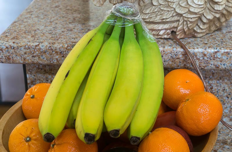 - Don’t separate your bananas, but do wrap their stem in plastic wrap.