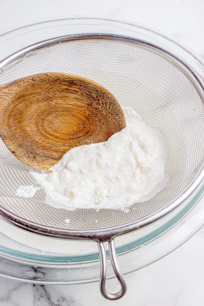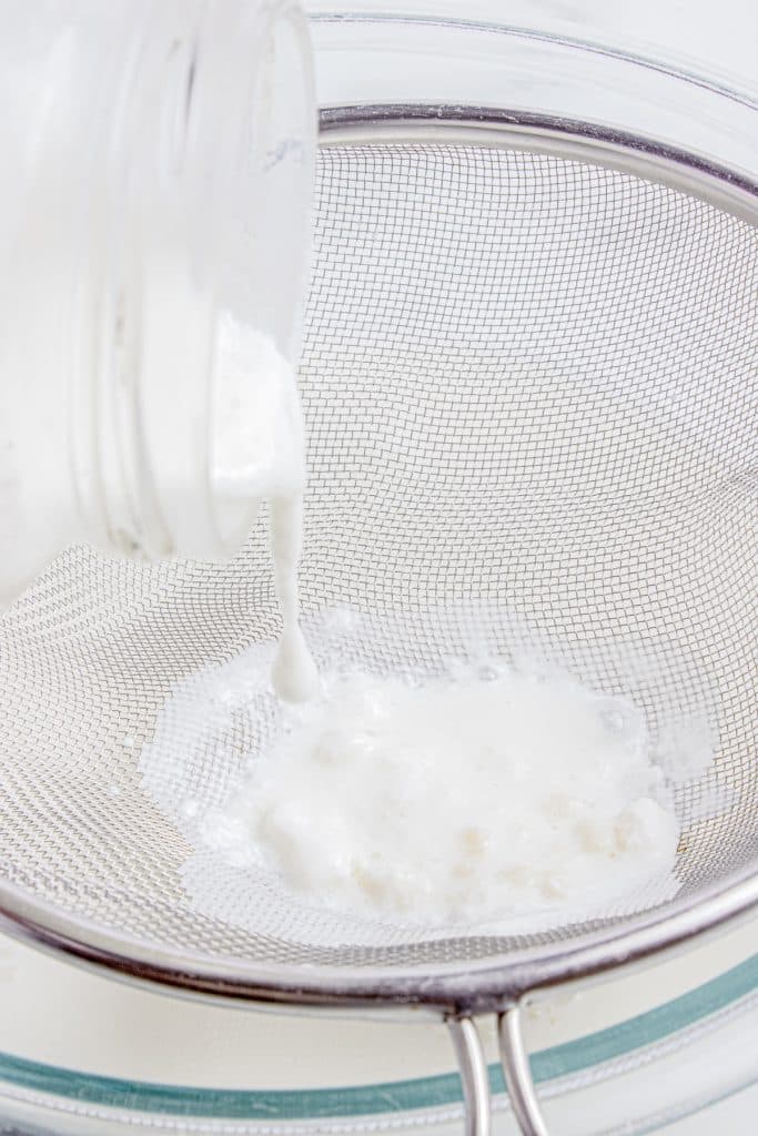 - Make your regular kefir, then strain out the grains (put those back into fresh milk for your next batch).
