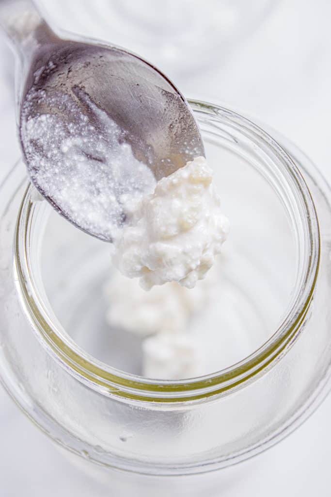 That said, like a sourdough starter or a kombucha scoby, kefir grains multiply when healthy and fed regularly. So, if you know someone who makes kefir, ask them to set aside some grains for you. With one teaspoonful of grains, you can start your kefir journey and make one cup of kefir in 12-24 hours.