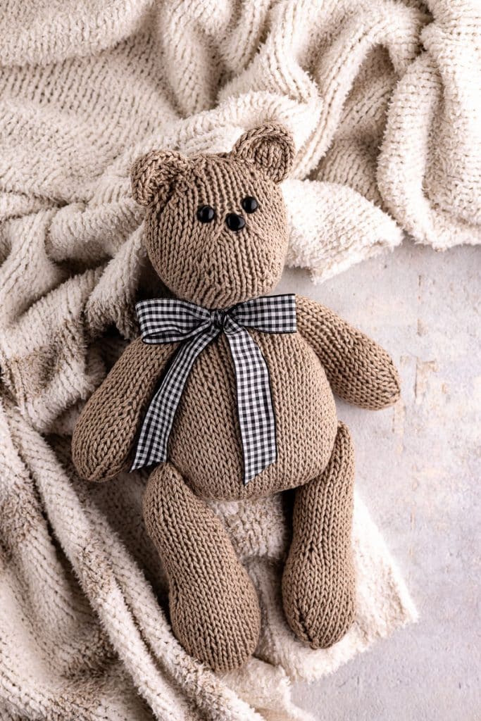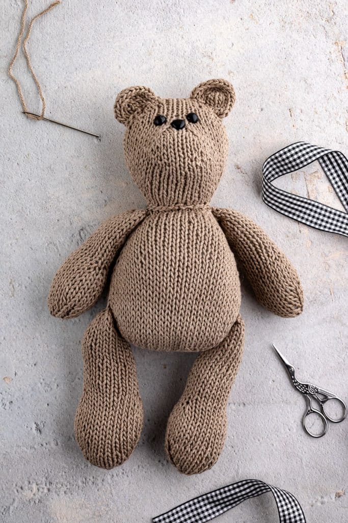 - This free Knit Teddy Bear Pattern is available in this post below and as an ad-free printable PDF for subscribers. You can find the pattern in the Library (your super secret password is included at the bottom of every Monday’s Newsletter email) or email me, and I’ll send it to you. Not a subscriber? C’mon—we’d love to have you. A subscription costs nothing and gives you access to all our printables and pattern PDFs. Click here to have the Knit Teddy Bear Pattern emailed to you.