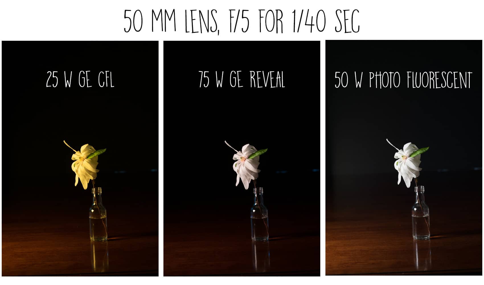 - I was really surprised at how yellow the 25W CFL made the flower. I went back after seeing this and changed the white balance to fluorescent and it really wasn’t much different.
