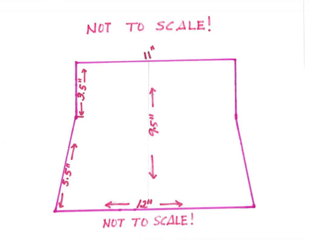 Using the following diagram as a guideline, cut your fabric for the sides of your bags. I didn’t have a piece of paper big enough nor a scanner that would accommodate a bigger piece of paper, so I just sketched out what I did on my fabric. But remember, it’s Not to Scale! However, the measurements indicated are the measurements I did use when I cut the material for my bags.