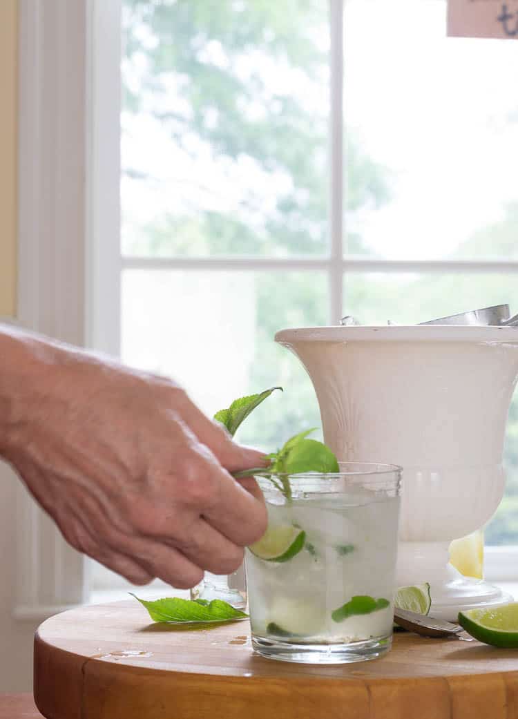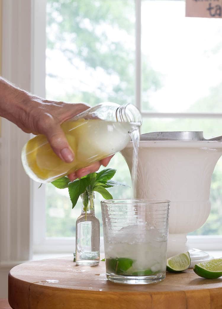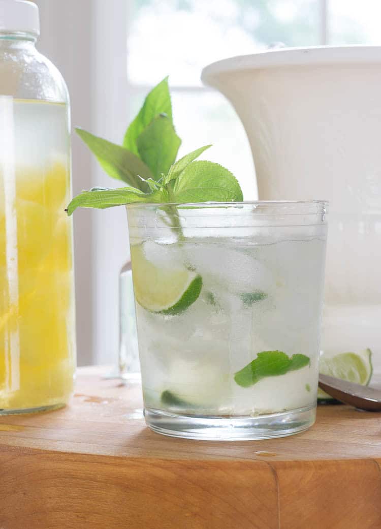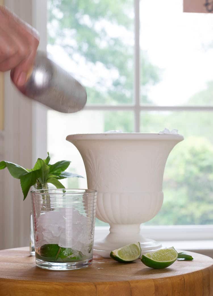 - Using a muddler, muddle the lime, simple syrup and pineapple sage leaves. With a gentle but firm force, push the muddler down into the lime and leaves and twist. Repeat 6-8 times. Don't muddle too much or you will release a bitter taste from the lime pith and the leaves.