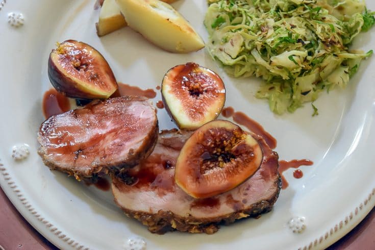 It’s one of those meals that is perfect for company, but easy enough for just an everyday meal for your family. It’s an easy pork loin recipe to prepare but looks as if you’ve spent all day! Not just any roasted pork loin mind you, but a roasted pork tenderloin recipe with fig preserves and garlic that should be fit for a King!