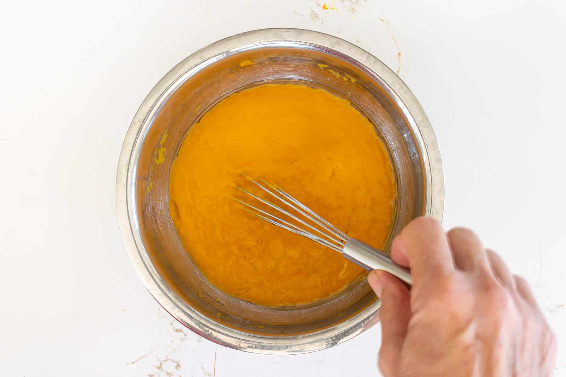 - Beat together oil, eggs, sugar, and pumpkin.