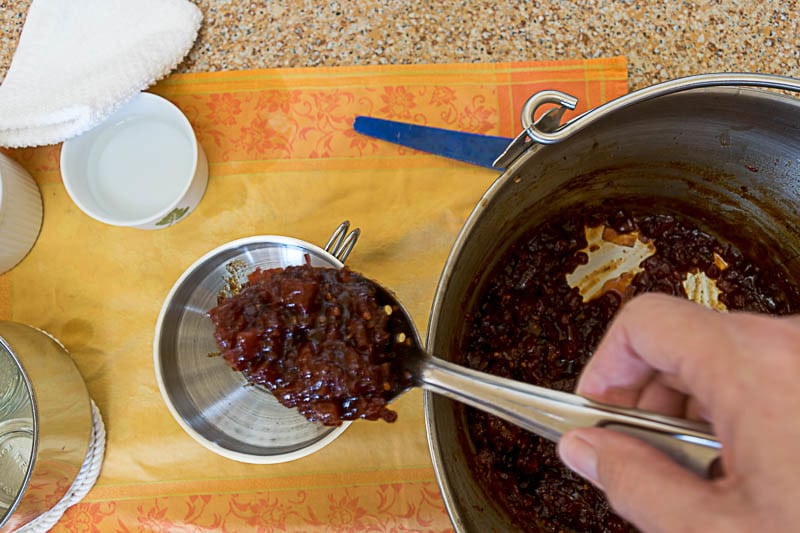 - Remove the pot from the stove and spoon the jam into your prepared jars.