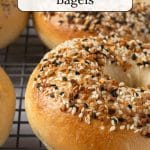 But, before their turn in the oven, you can roll still‑warm bagels in everything seasoning (my go-to) for a savory crunch or choose from various other topping options. However you top them, the result is a batch of bakery‑level bagels that freeze like a dream and stand ready for breakfasts, sandwiches, and snack attacks all week long.