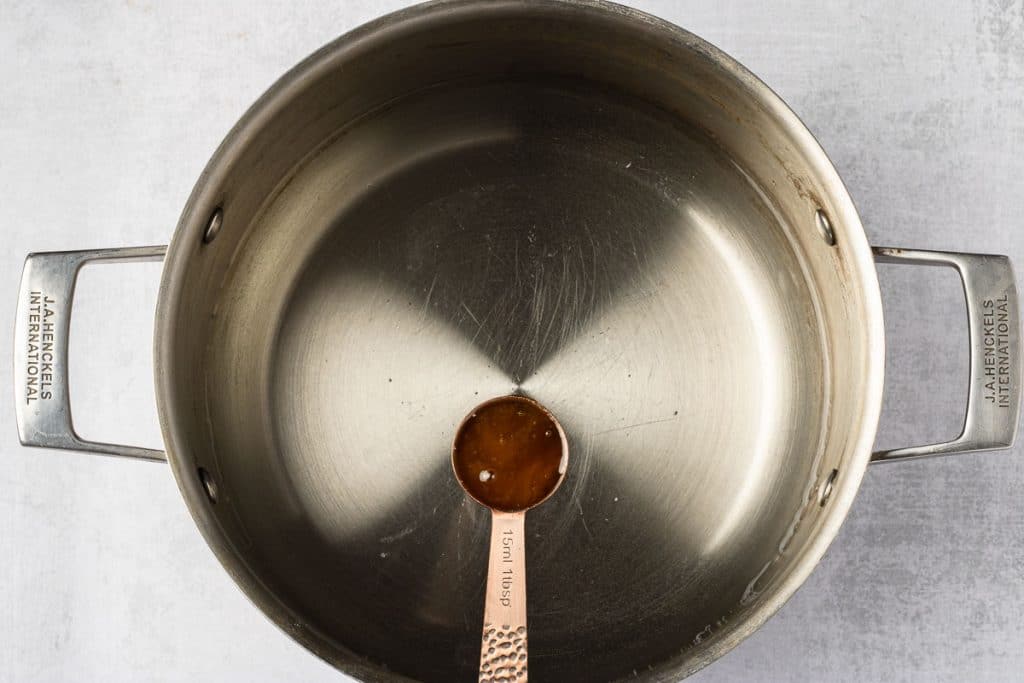 8. In a large pot, boil 6 cups of water with one tablespoon of honey and whisk well. The water bath temperature should be about 180-190°F (82-88°C)