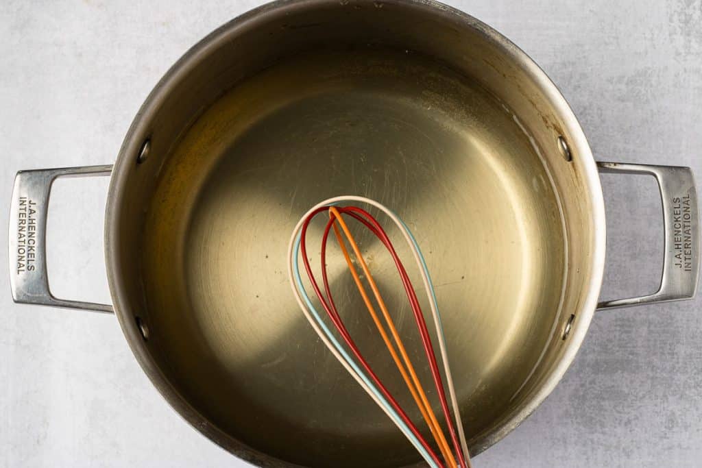 - In a large pot, boil 6 cups of water with one tablespoon of honey or sugar and whisk well. The water bath temperature should be about 180-190°F (82-88°C).