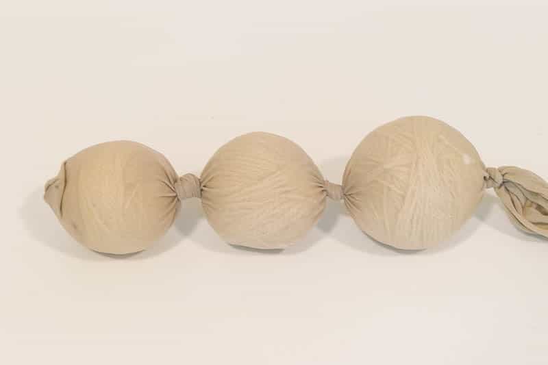 - Put your balls in a a length of panty hose in a pot of boiling water and then simmer for 1 hour. Turn the stove off and let the balls sit until the water cools down. You may have to weigh your balls down…I just used a pot lid that was smaller in diameter than the pot.