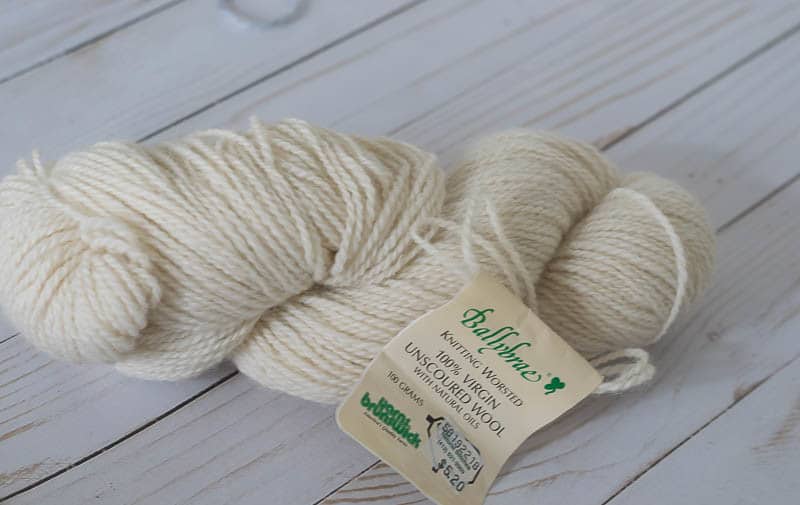 - Use 100% wool yarn (my skein was in my stash from MANY years ago…but something like this would work) and wool roving. I prefer using a natural undyed color to prevent any staining of clothing. It’s possible that with that roving yarn, you might not need the extra roving to cover it! I haven’t tried that yarn yet…but if I make more I probably will.