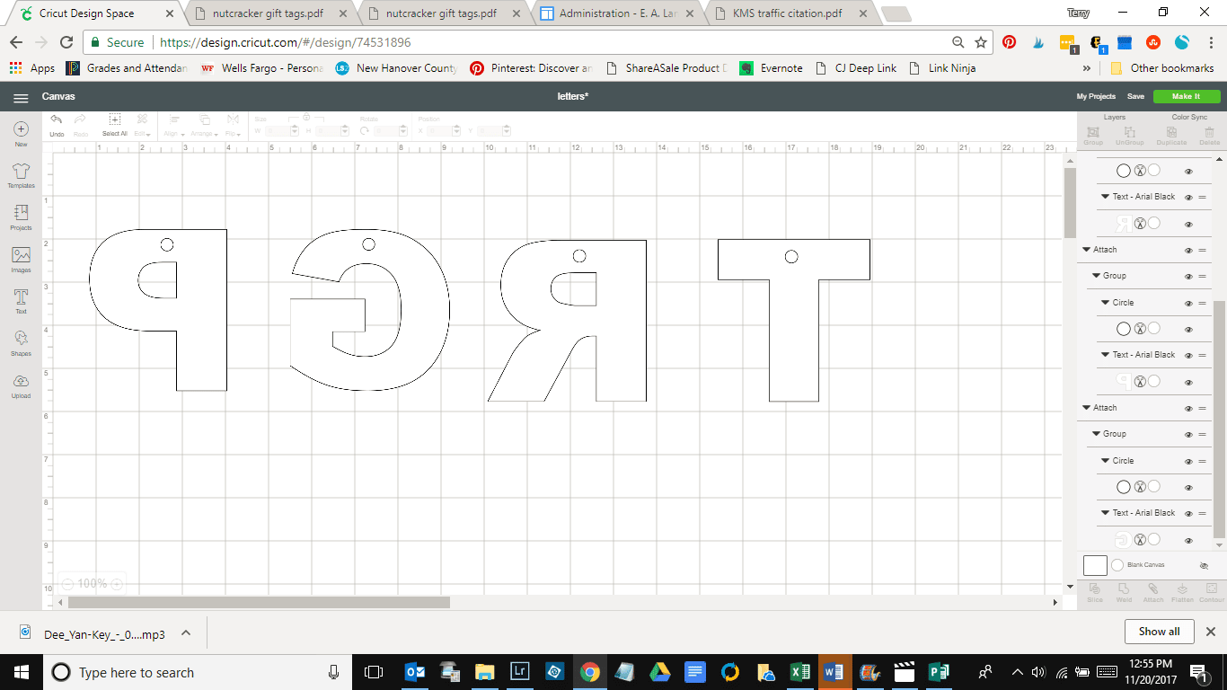 - I cut letters with my Cricut. I adhered the paper side to the Cricut mat so that the felt fibers didn’t stick to the adhesive of the mat so I reversed the letters.