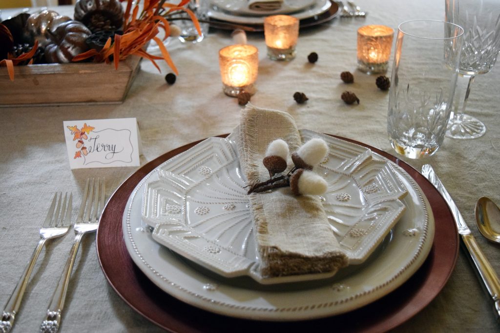 - Brown Rustic Wire 70′ 18 Gauge, if making napkins ‘rings’ from the acorns.