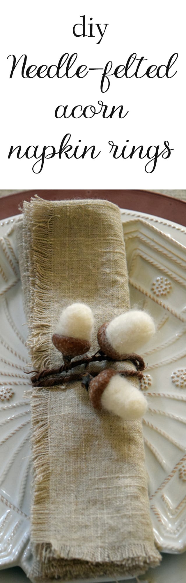 • When I wrapped the Needle Felted Acorn Napkin Rings around the napkin, I arranged the acorns so they were all laying flat.Illustrated Instructions to make needle felted acorns and needle felted acorn napkin rings. Perfect for your Fall and Thanksgiving table.